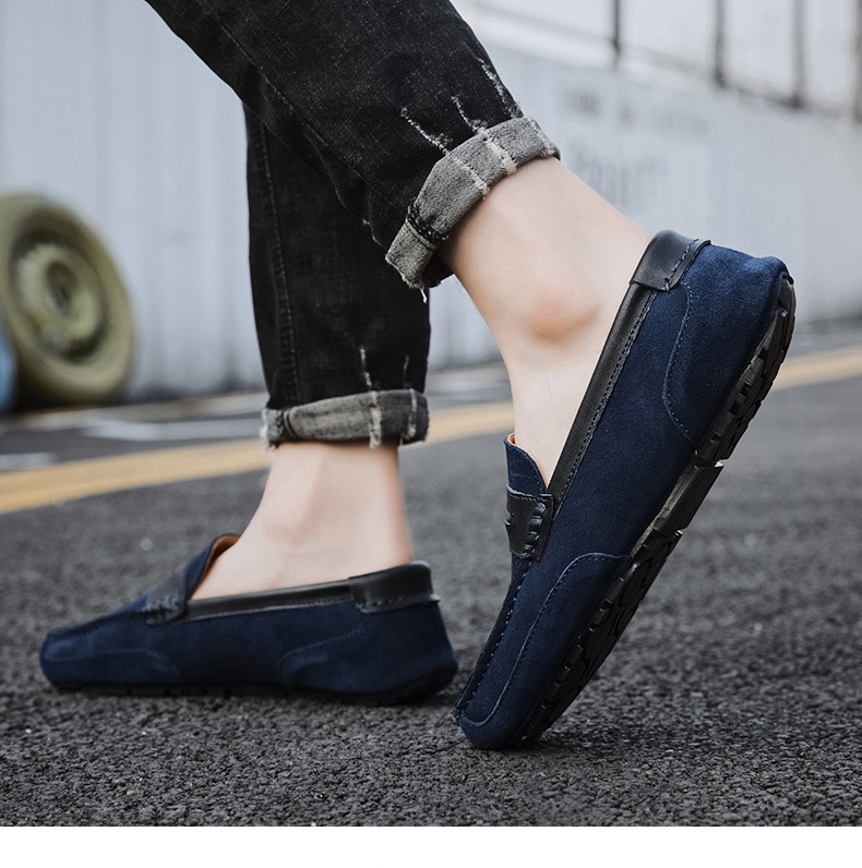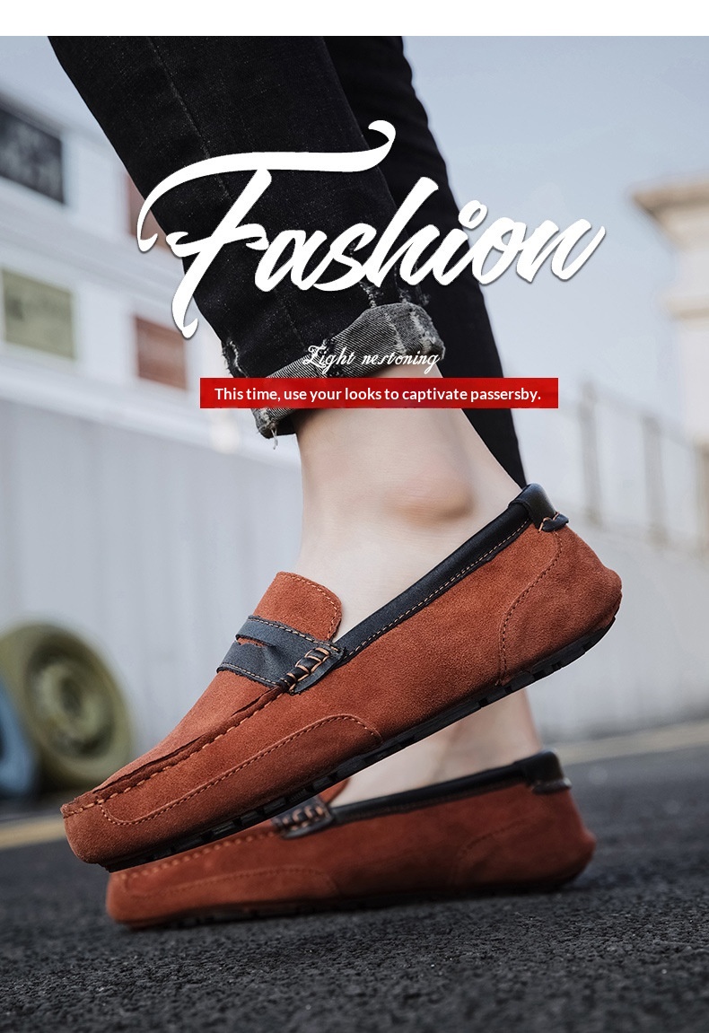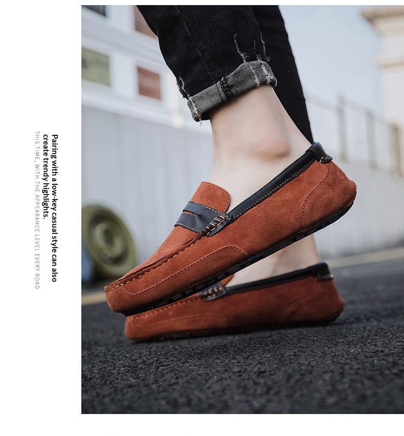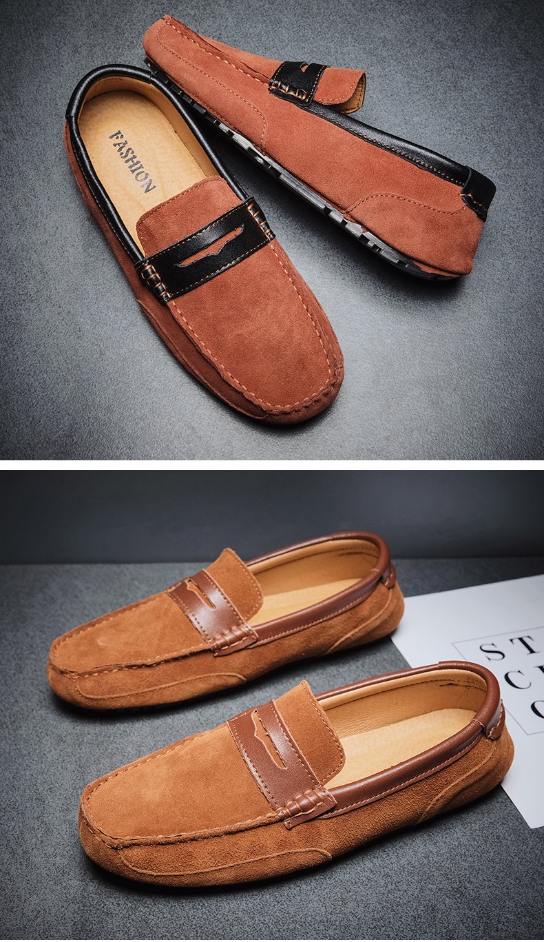 New Color-block Edging Slip On Loafer For Men Versatile Leather Shoes