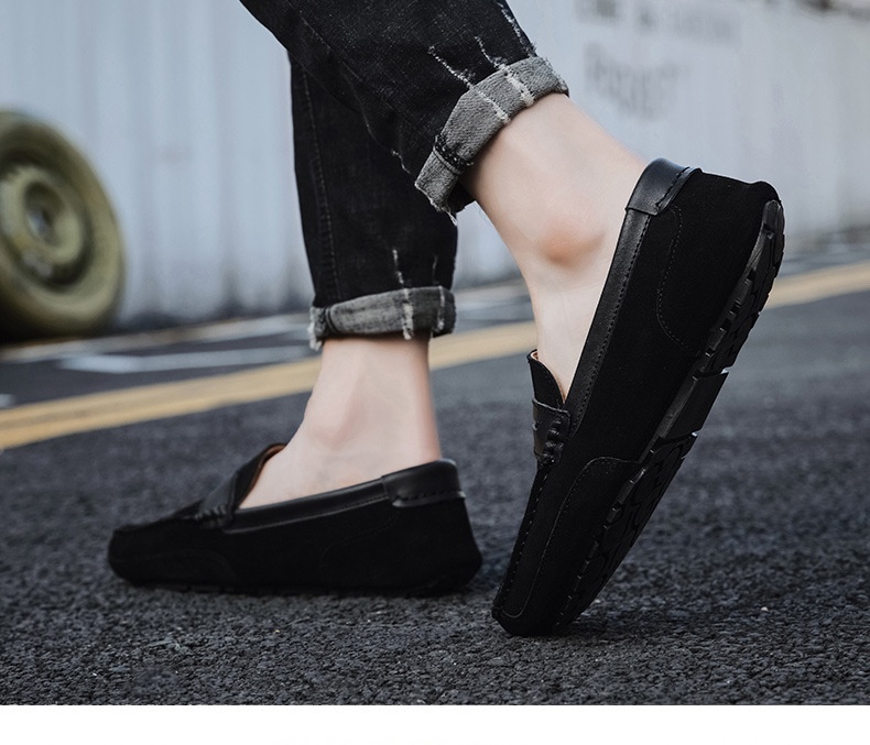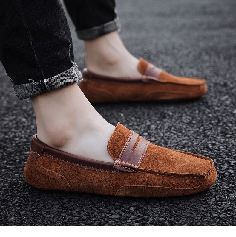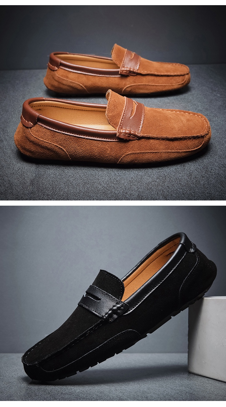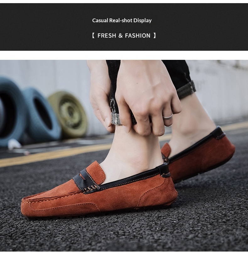 New Color-block Edging Slip On Loafer For Men Versatile Leather Shoes